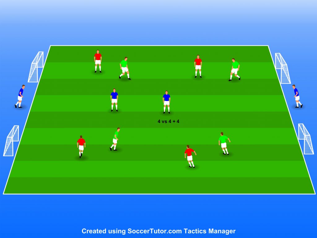 Joc de posesie 4 vs 4 + 4 neutri cu finalizare în porți mici